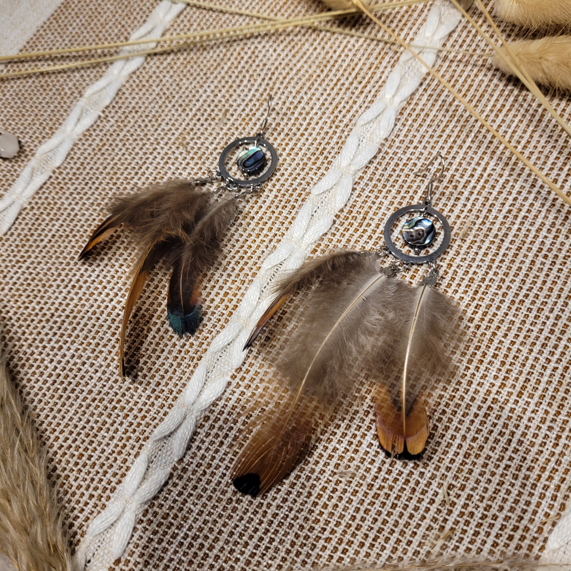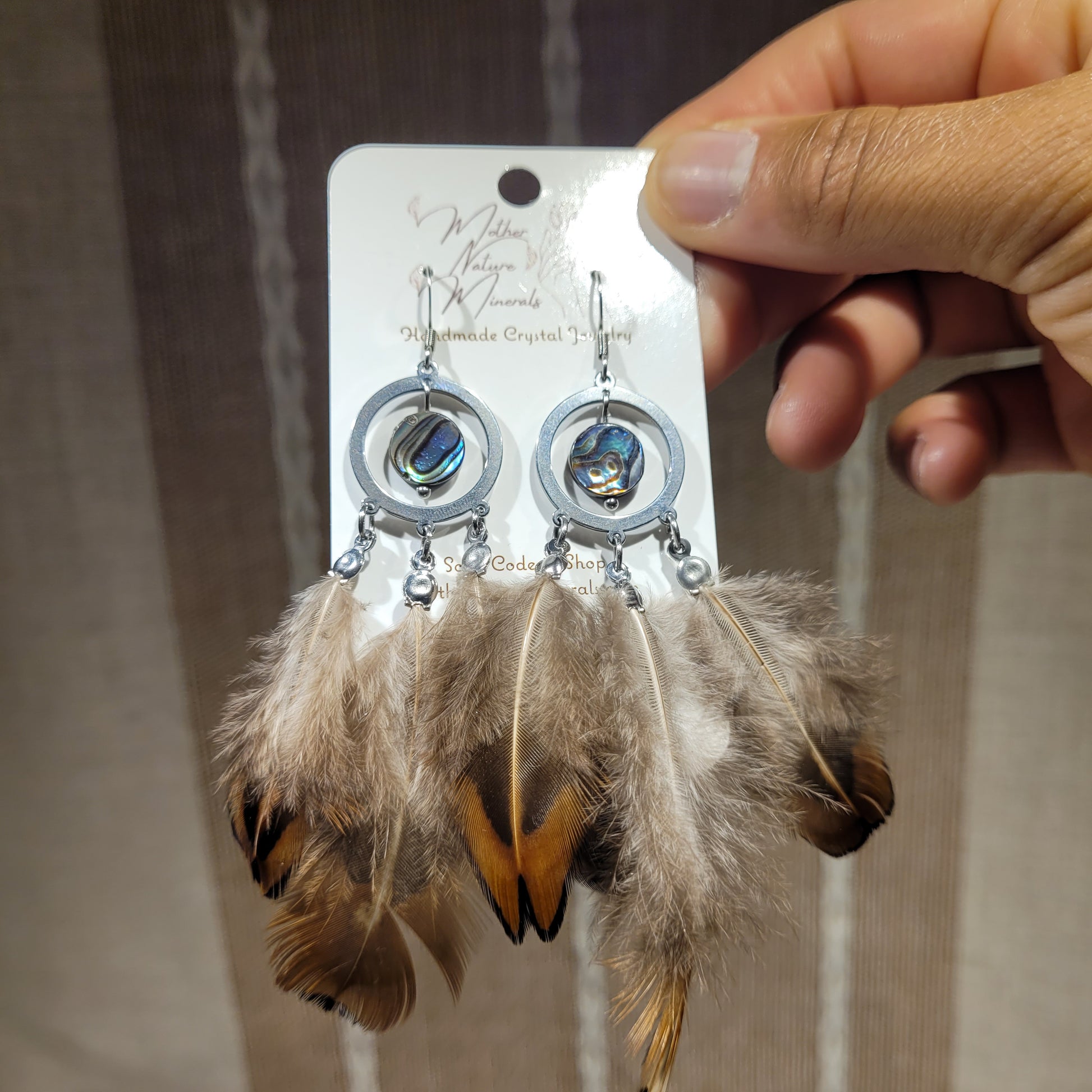 I created these lovely Abalone Earrings with ethically sourced phesant feathers and high quality Abalone beads, and high quality stainless steel!