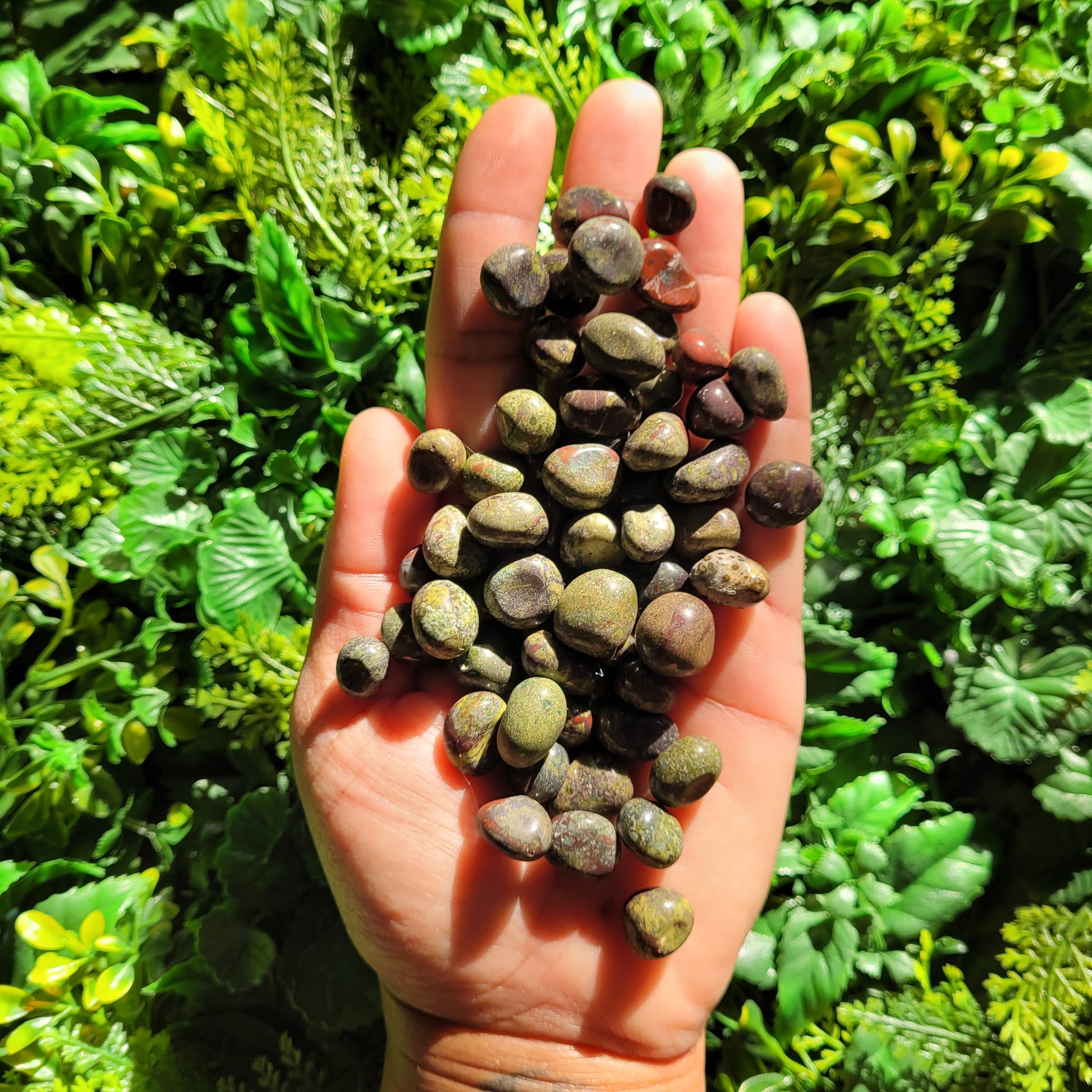 📖Crystal Properties 📖: Contrary to its name, natural Dragon Blood Jasper is not actually a true Jasper, rather it belongs to the Chalcedony Quartz mineral family. These gemstones contain a mineral called epidote which gives it the distinctive green color while the red is from the piemontite mineral deposits. Ancient Greeks believed that the red spots on this stone are droplets of blood. Hence, the name Blood Jasper.