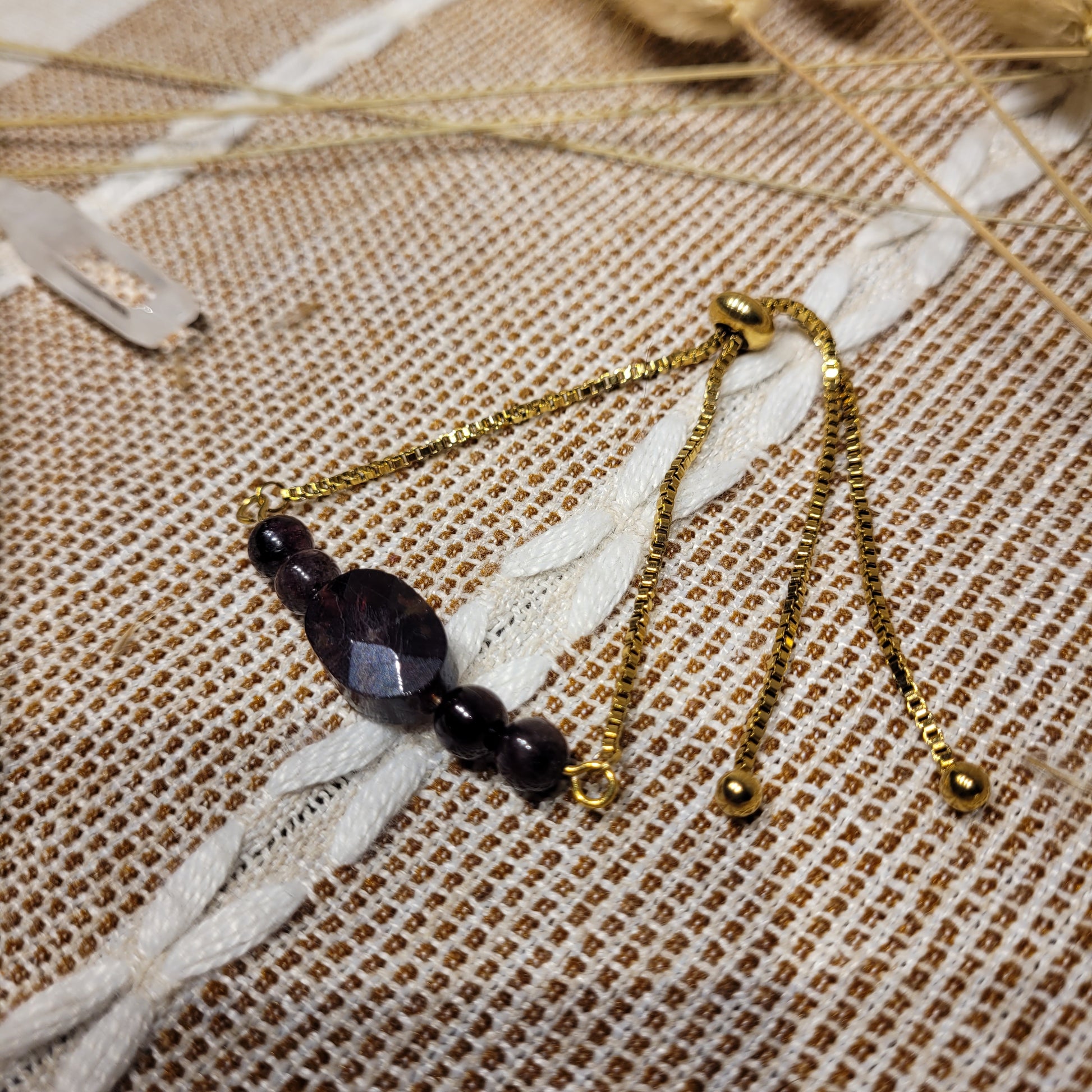 I made this Garnet Bracelet with high-quality Garnet crystal beads, brass pin, and gold plated stainless steel chain!