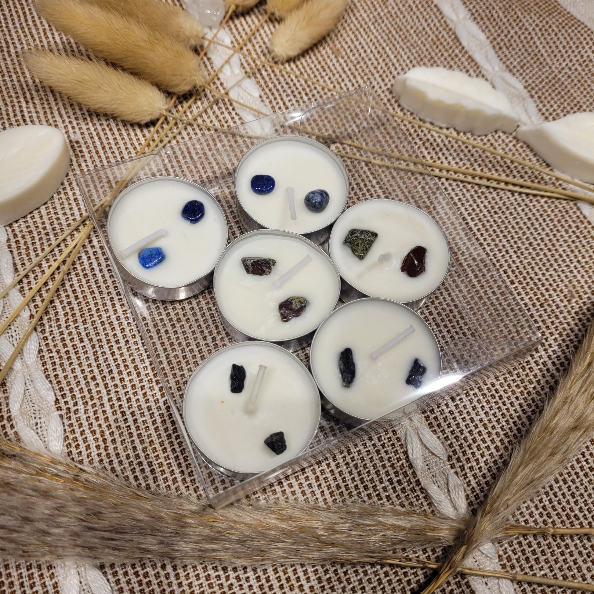 Handmade soy candles created with high quality, clean burning fragrance oil, cotton wick, and decorated with high-quality crystals!