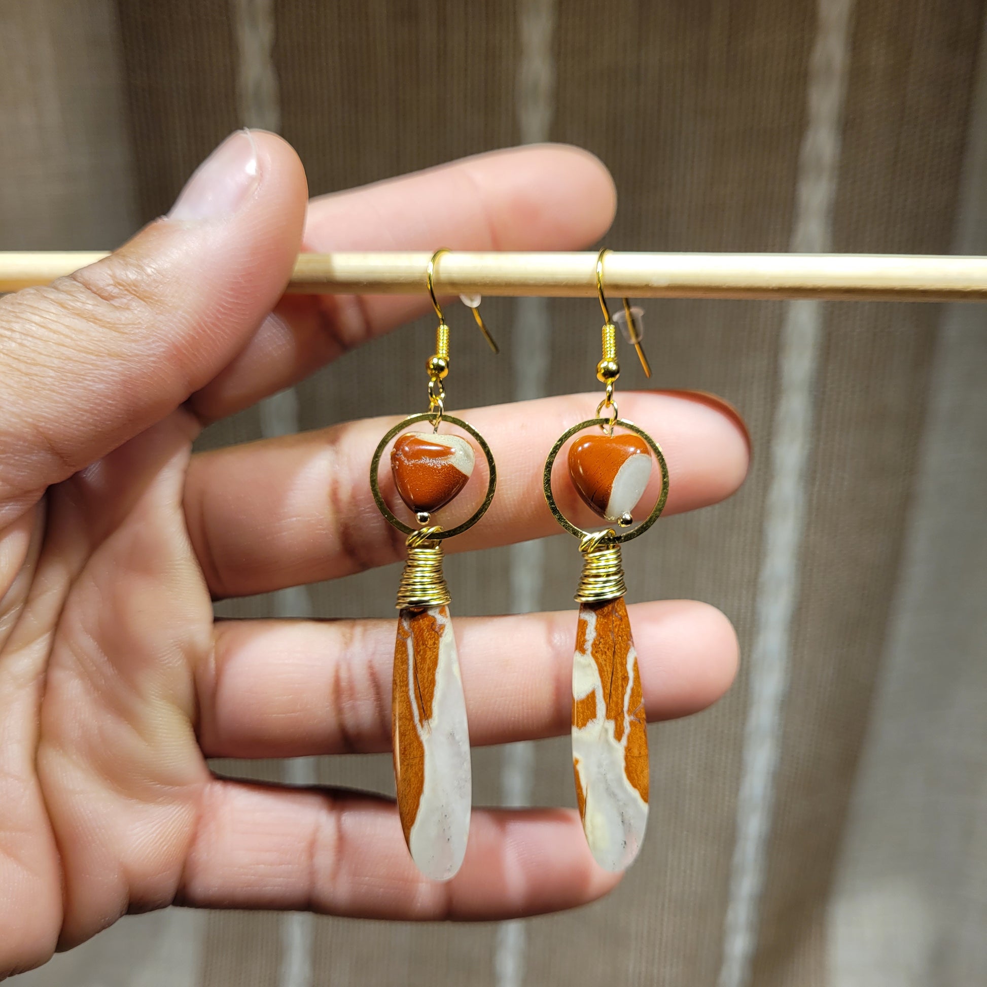 I created these Red Jasper Earrings with brass hoop charms, gold stainless steel hooks, Red Jasper Heart beads, and brass wire wrapped Red Jasper crystals.