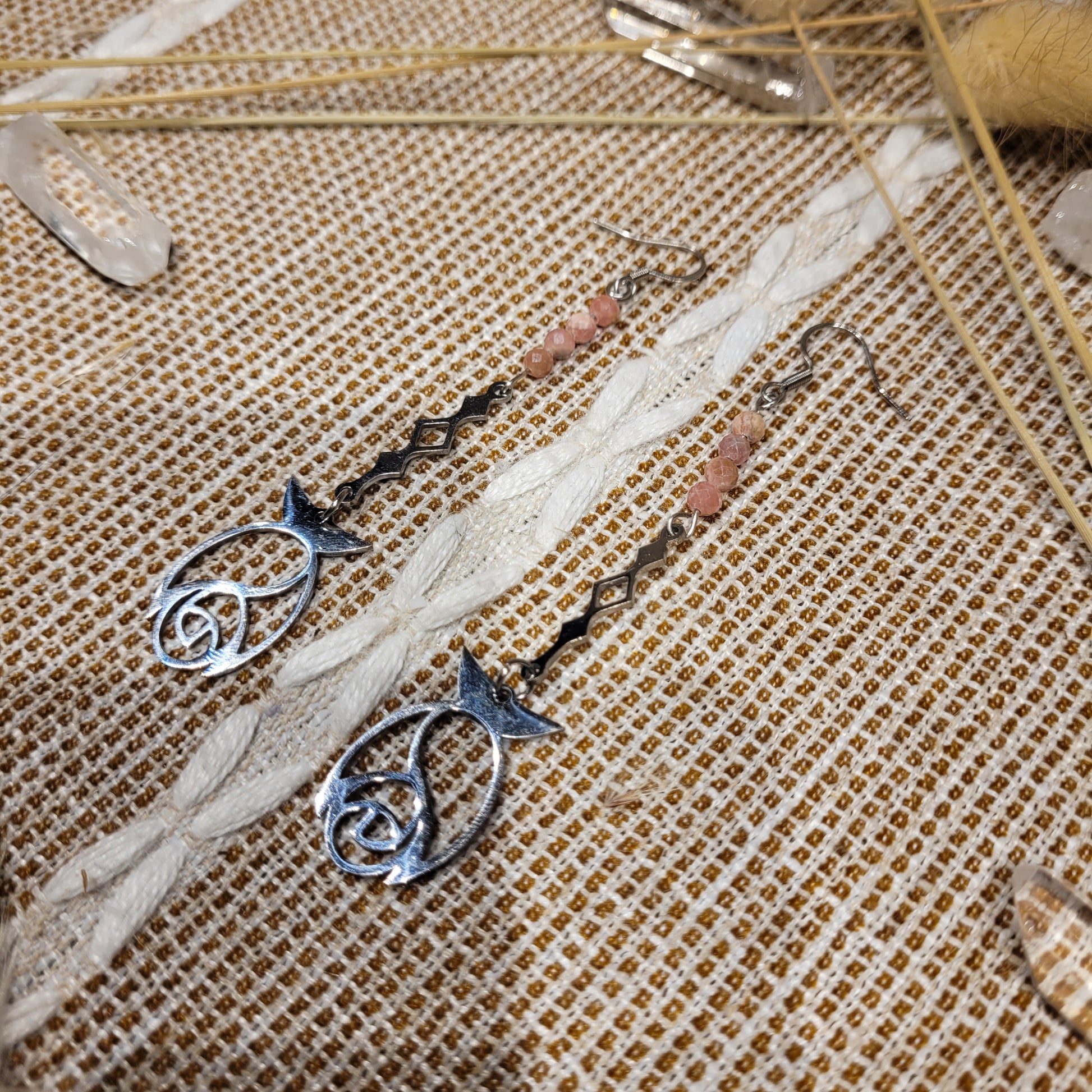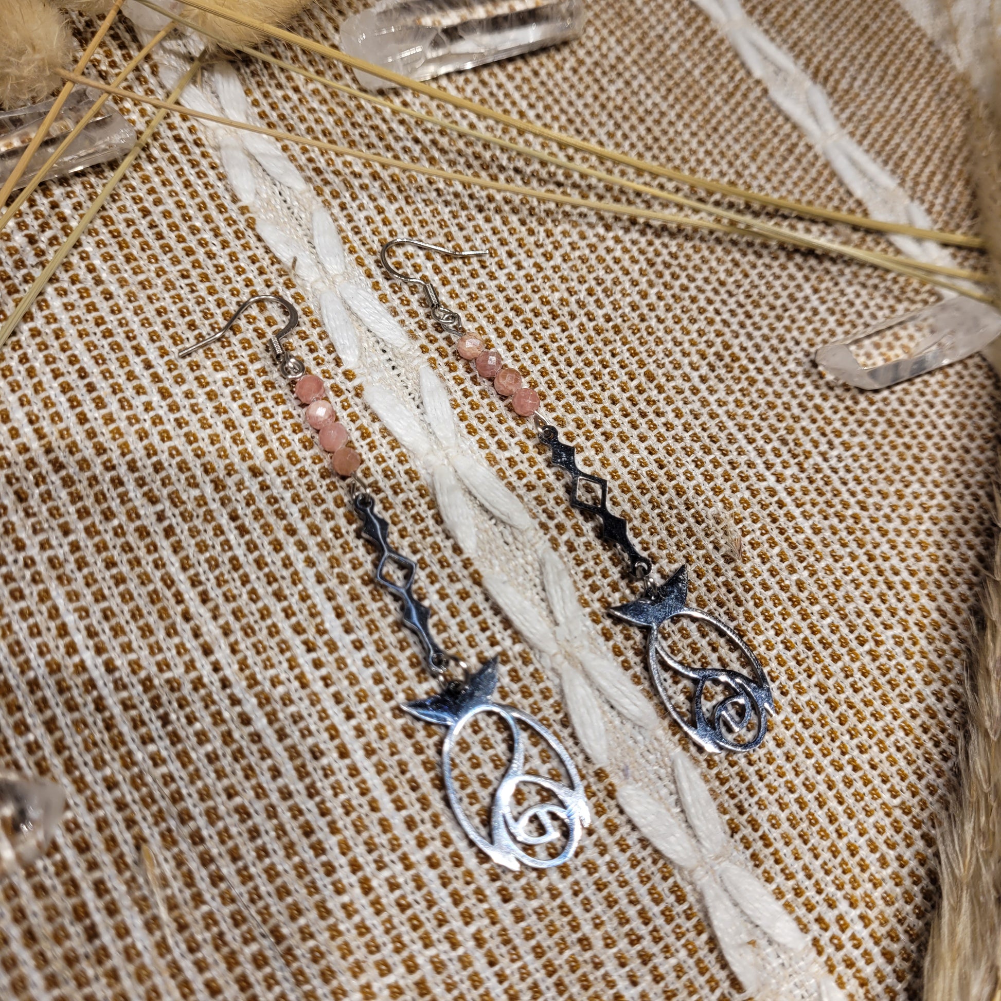I created these Rhodochrosite earrings with faceted Rhodochrosite crystals, stainless steel flower charms, and with stainless steel hooks!