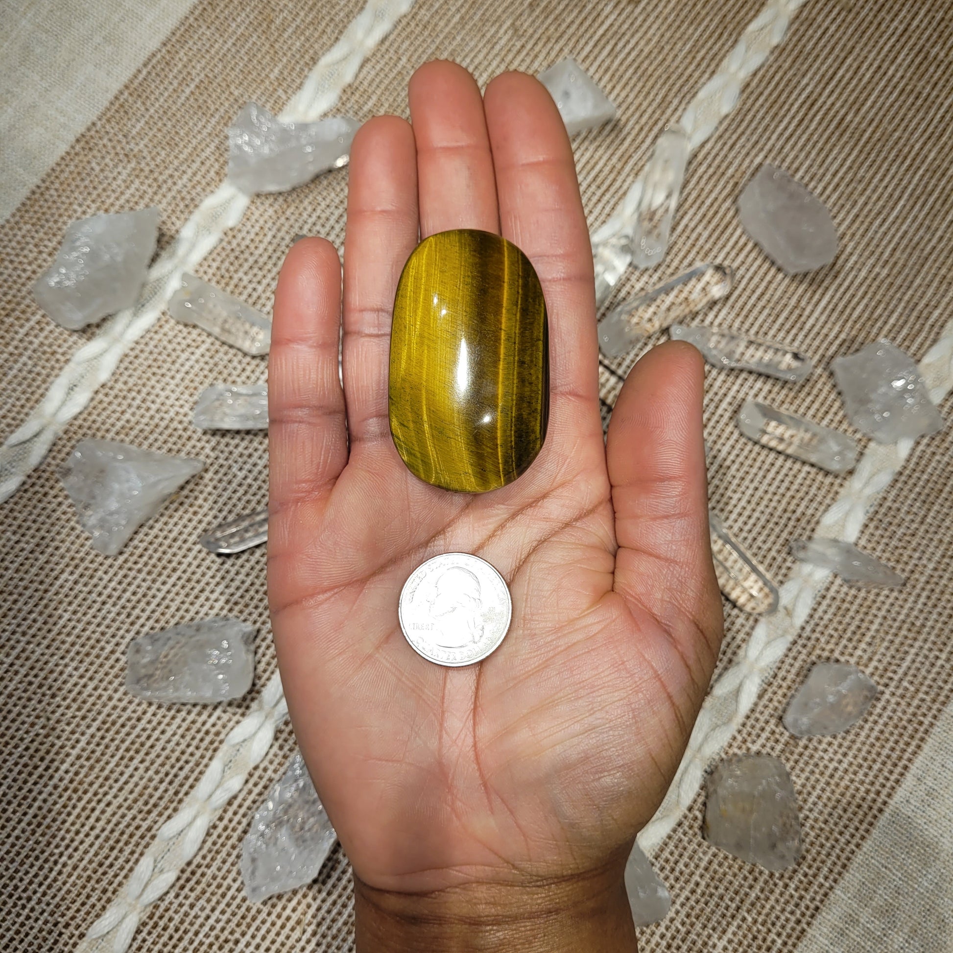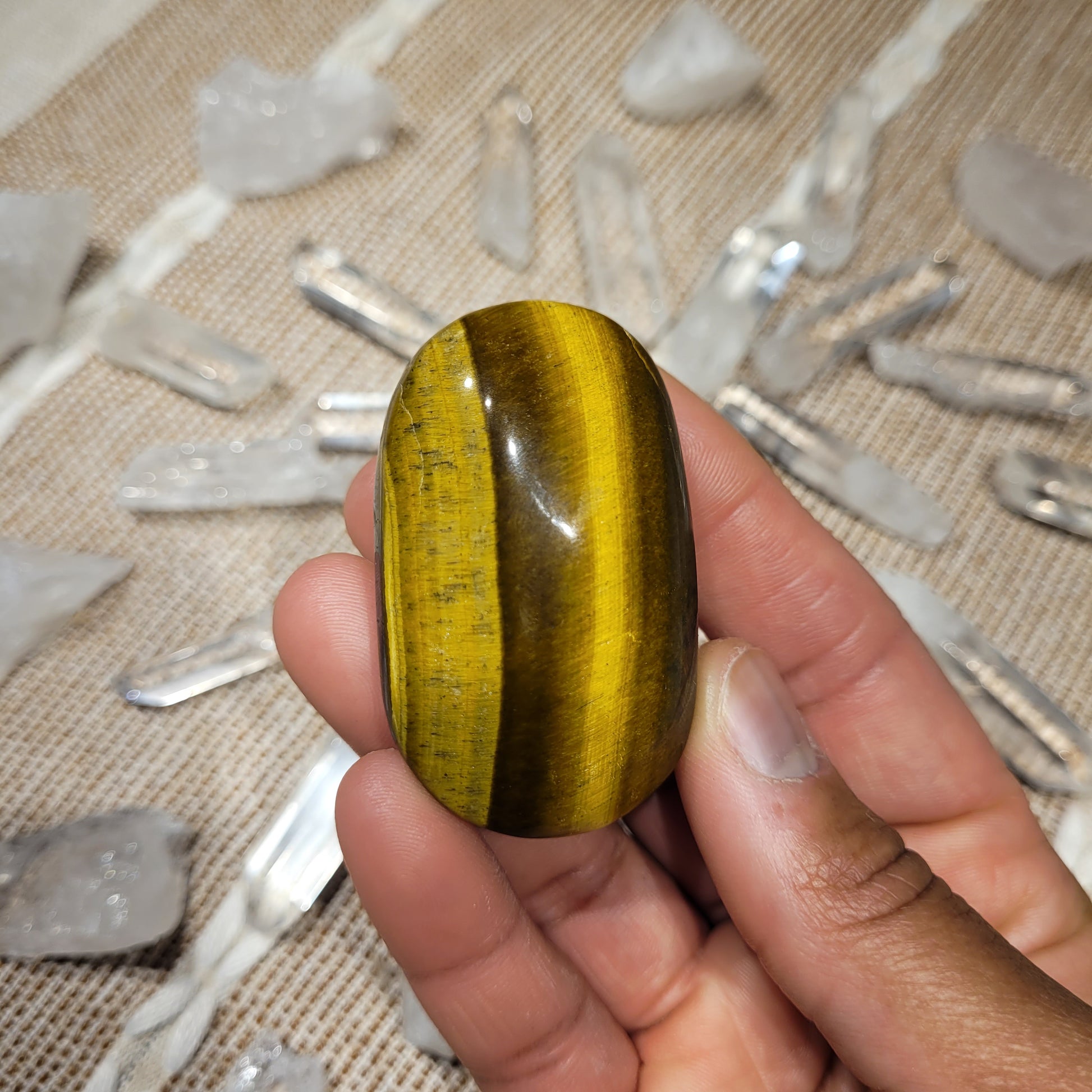 📖Crystal properties📖: Tigers Eye is a member of the Chalcedony mineral class family. It has a silky luster and an opaque transparency. It is called Tiger’s Eye because it resembles the eye of a tiger or a cat. The largest number of Tiger’s Eye stones can be found in the Northern Cape Province in South Africa and Thailand. However, it can also be mined in Namibia, the USA, Canada, Western Australia, Spain, Brazil, China and Myanmar. Sources of Tiger’s Eye can also be found right across India.