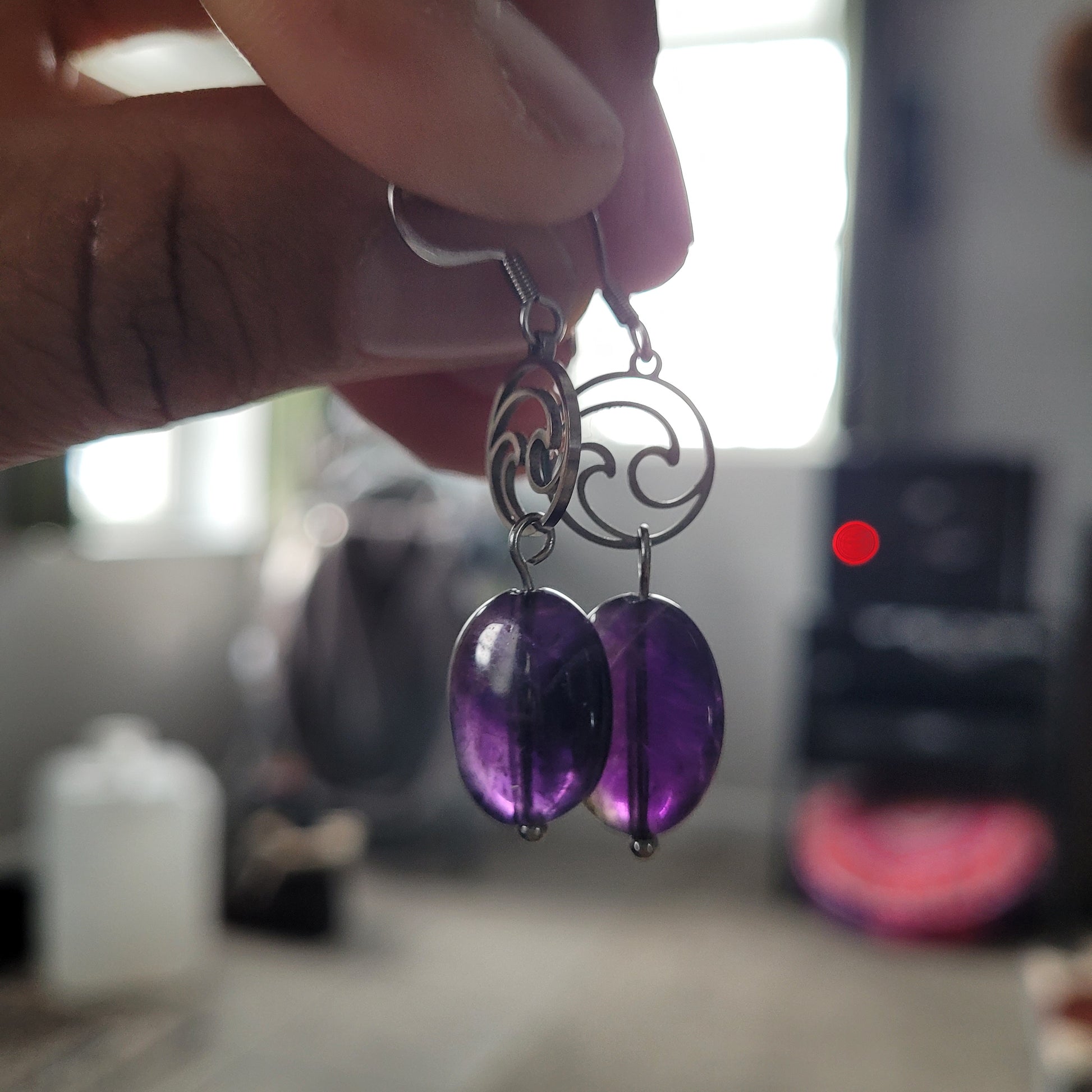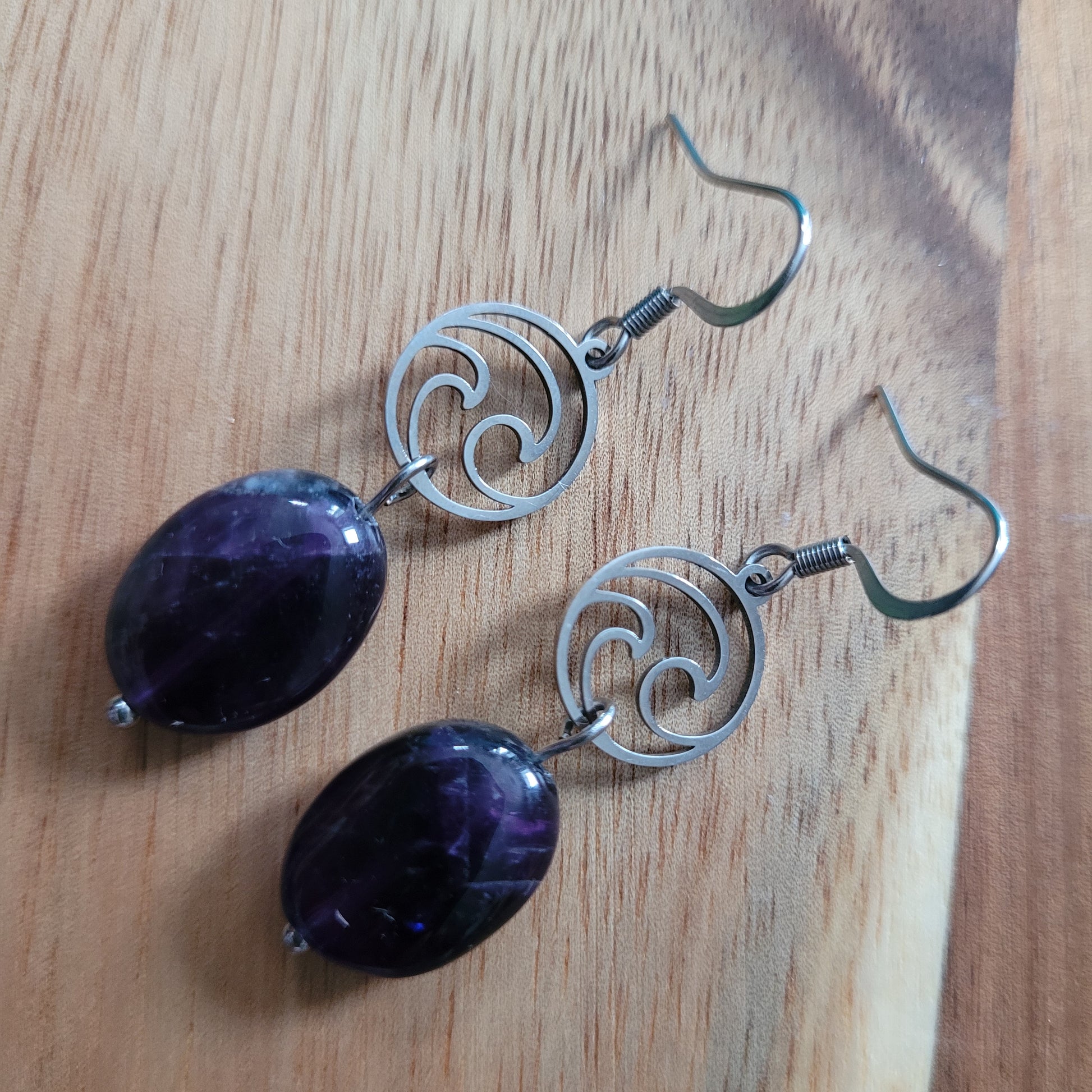 I created these beautiful earrings with stainless steel wave beach charms, stainless steel hooks, and ethically sourced Amethyst crystals from Brazil!