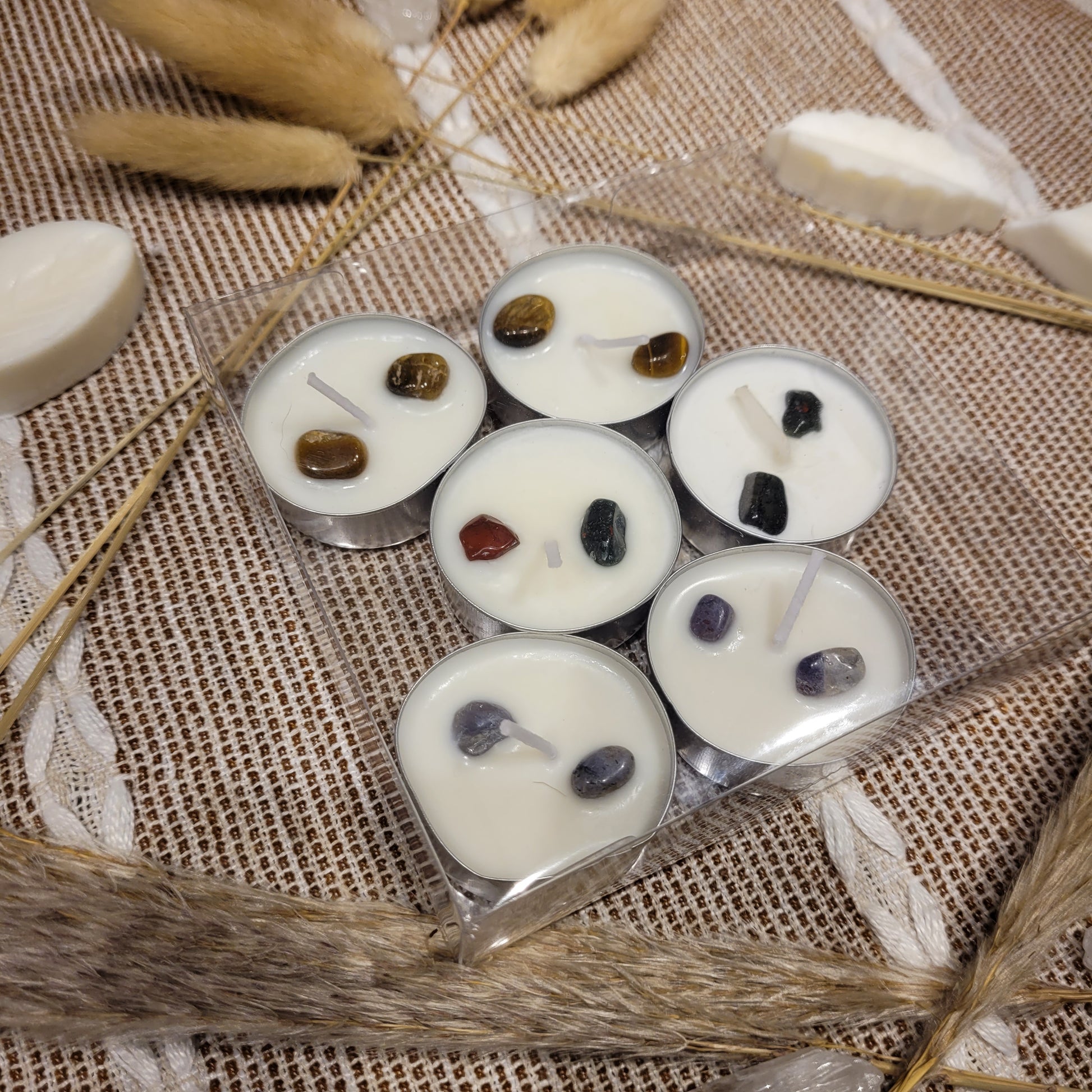 Handmade soy candles created with high quality, clean burning fragrance oil, cotton wick,  and decorated with high-quality crystals!