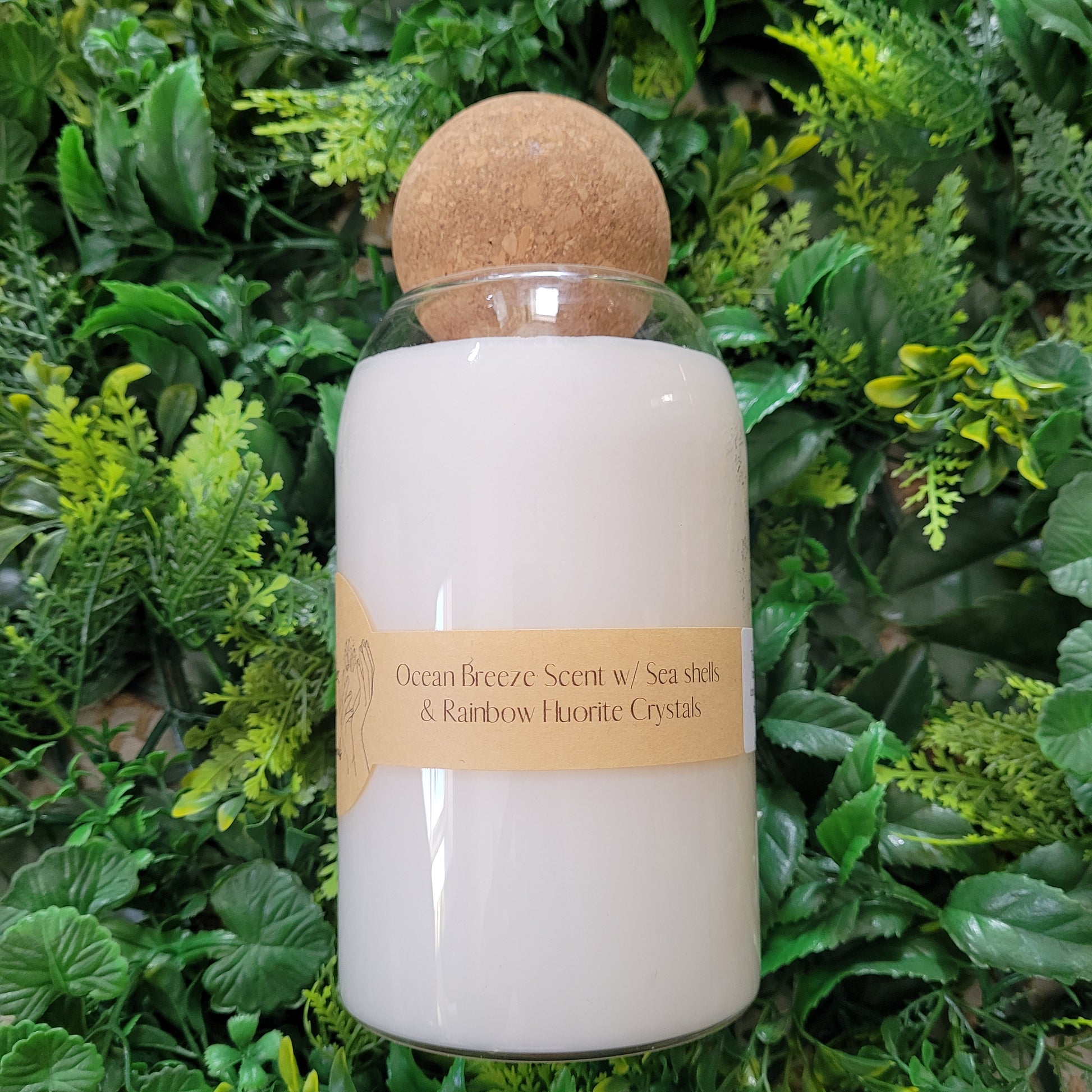 Handmade soy candles created with high-quality clean burning essential oil infused fragrance, 100% cotton wick, lead free borosilicate glass jar, natural cork lid, decorated with organic dried herbs and ethically sourced crystals in a 25 oz jar. Plus there is a hidden crystal on the bottom!