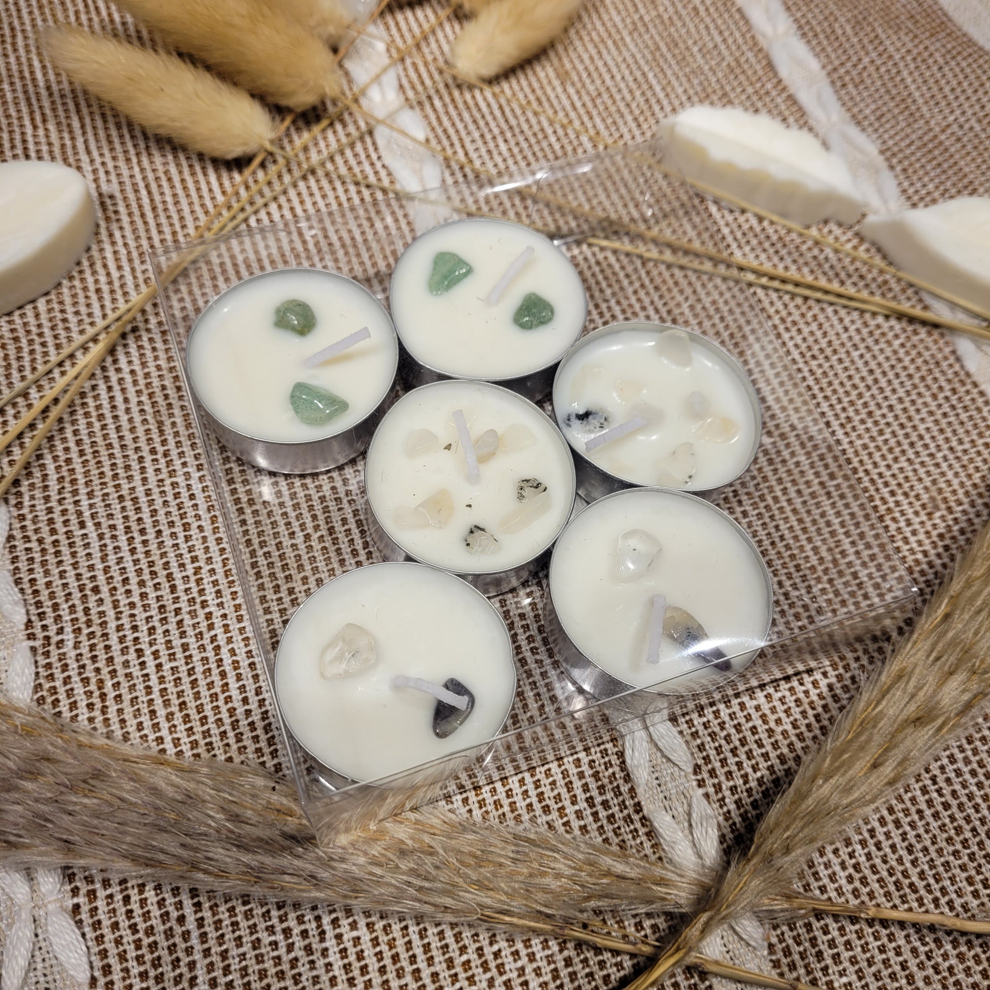 Handmade soy candles created with high quality, clean burning fragrance oil, cotton wick, and decorated with high-quality crystals!