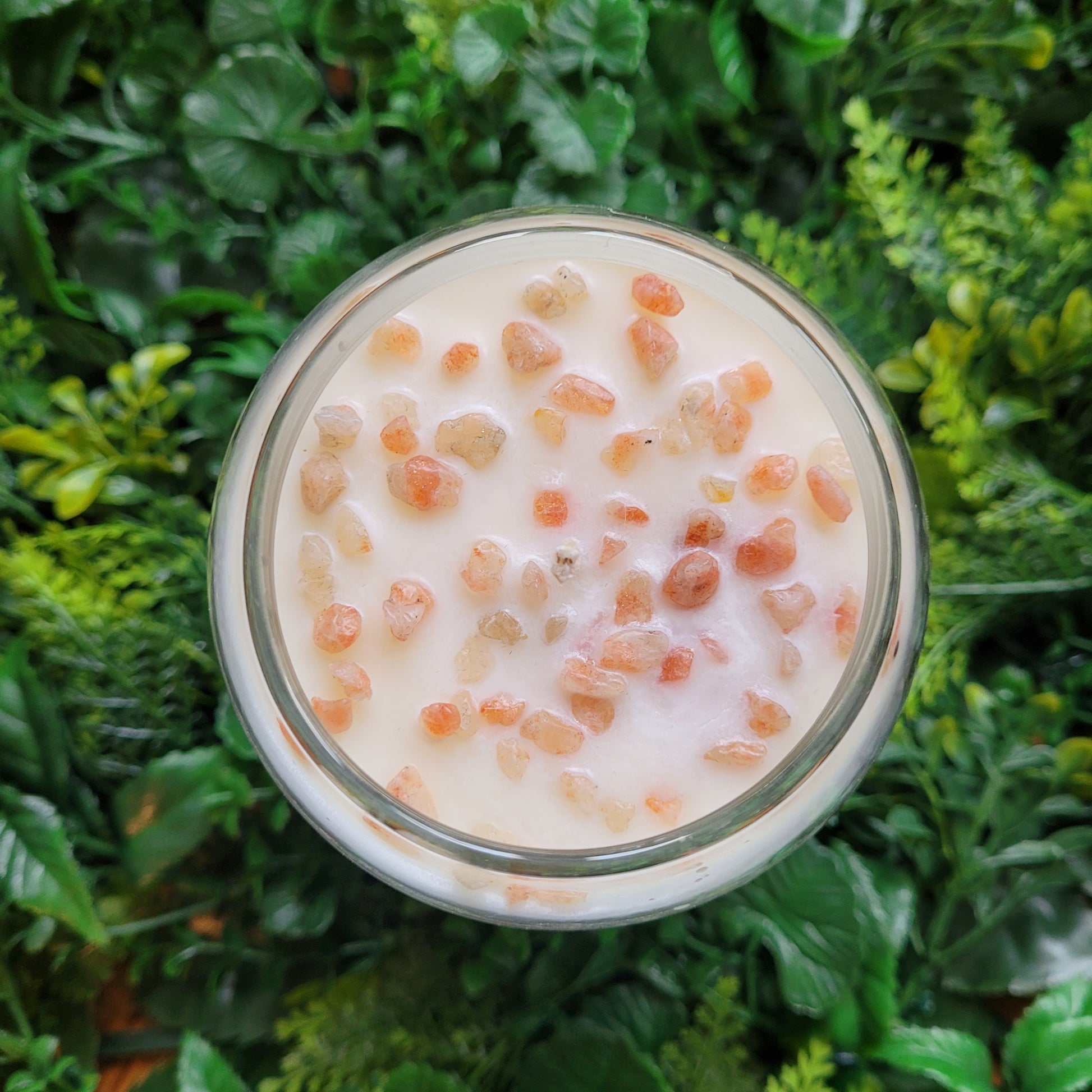 Handmade soy candles created with high quality, clean burning fragrance oil, decorated with organic dried herbs and natural ethically sourced crystals in a 25 oz. Jar. Plus there is a hidden crystal on the bottom!