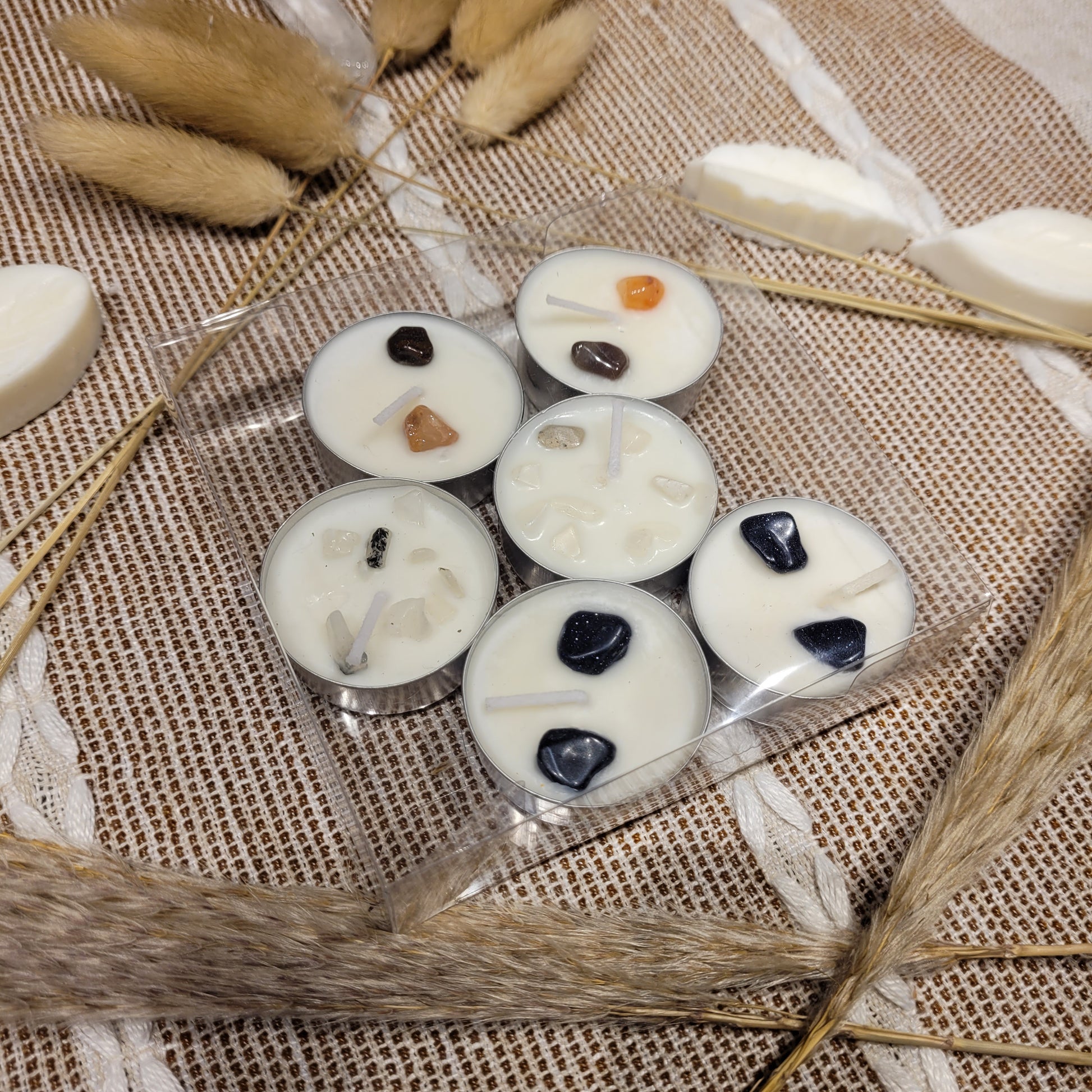 Handmade soy candles created with high quality, clean burning fragrance oil, cotton wick, and decorated with high-quality crystals!