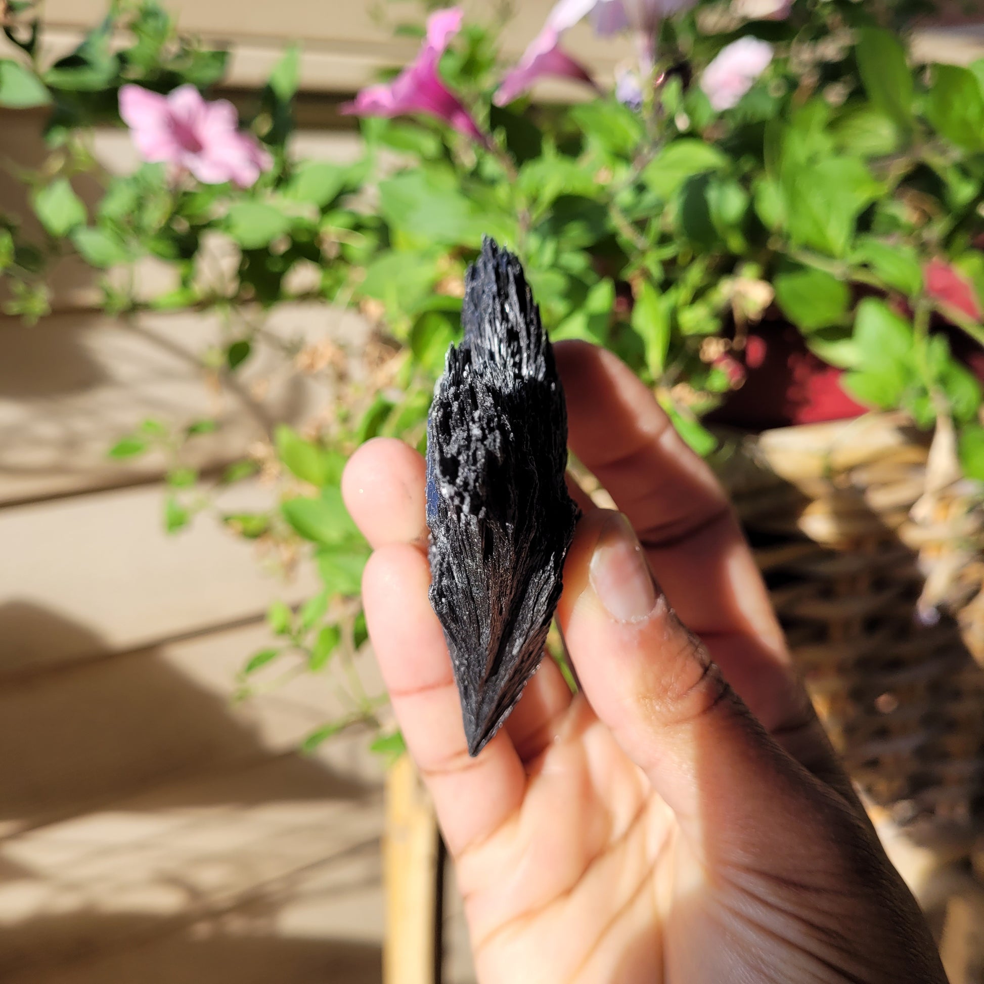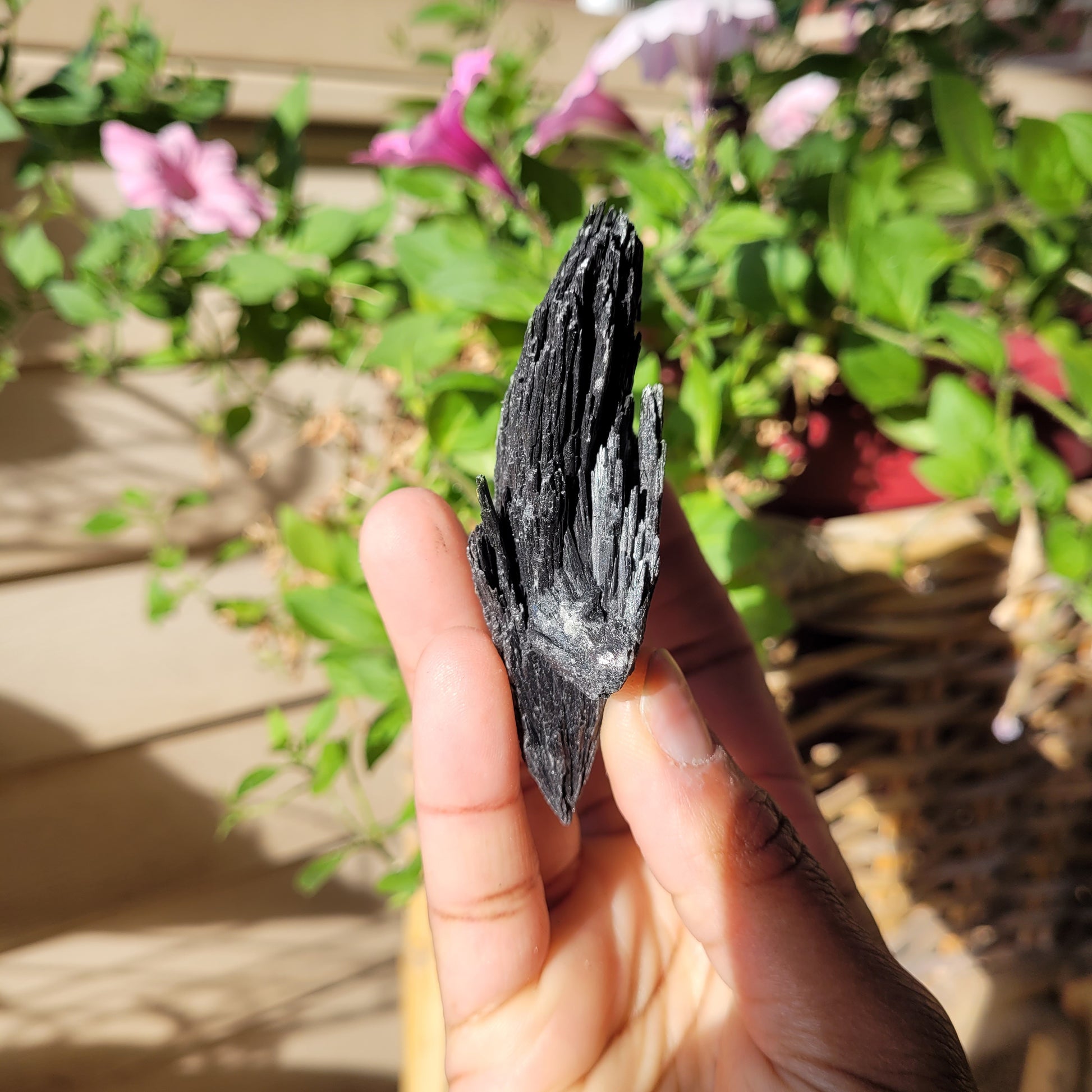 📖Crystal Properties:📖 Black Kyanite is an aluminum-rich silicate mineral that forms in pegmatites at extremely high pressure. It crystallizes in the form of “fan-like” blades that can reach nearly half a foot in length! Most of the Black Kyanite on the market comes directly from the Minas Gerais region of Brazil, although there are other important localities within Burma, South Africa, and India.