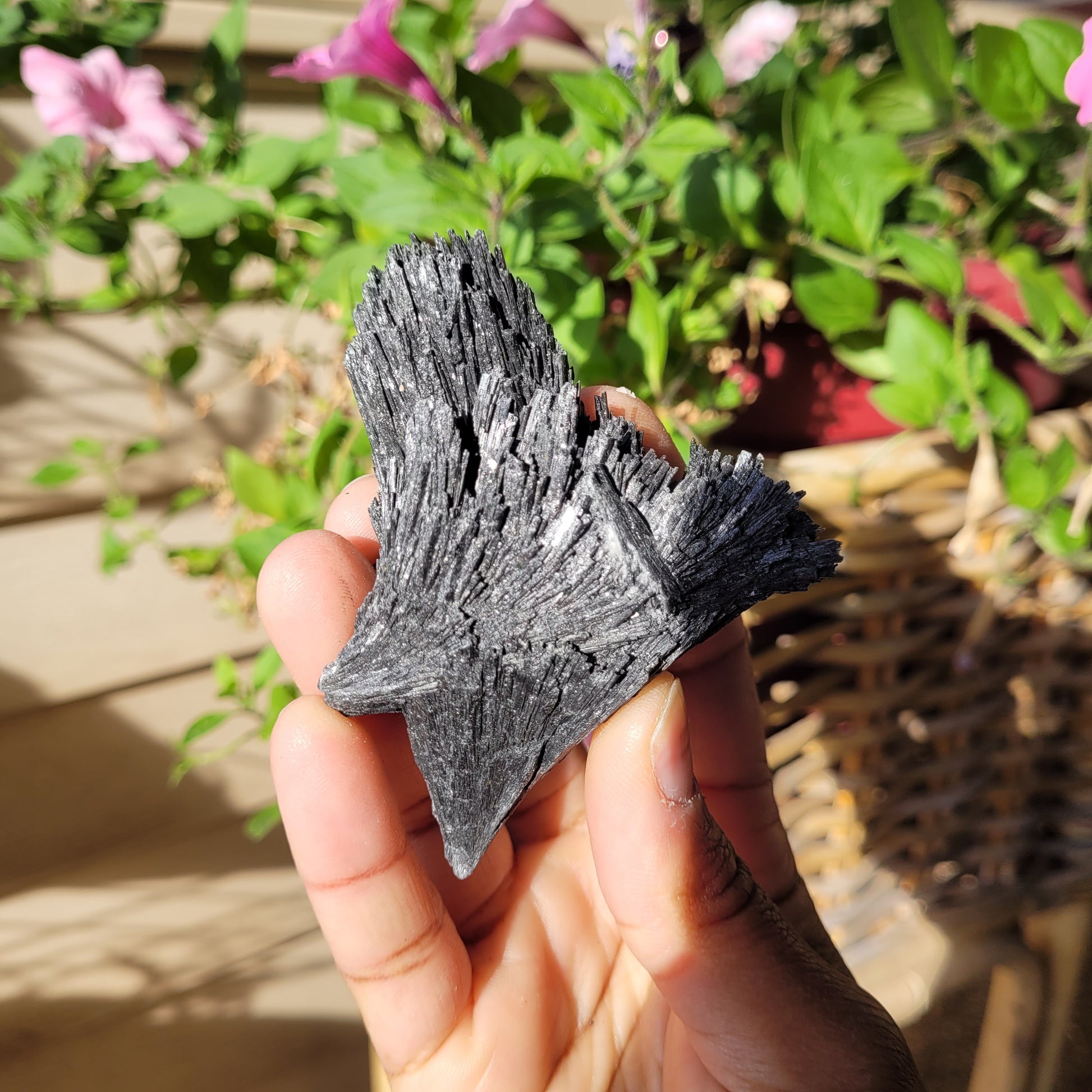 Gorgeous raw Black Kyanite Crystal Fan with stunning fan like formations. Weighs approximately 88g.