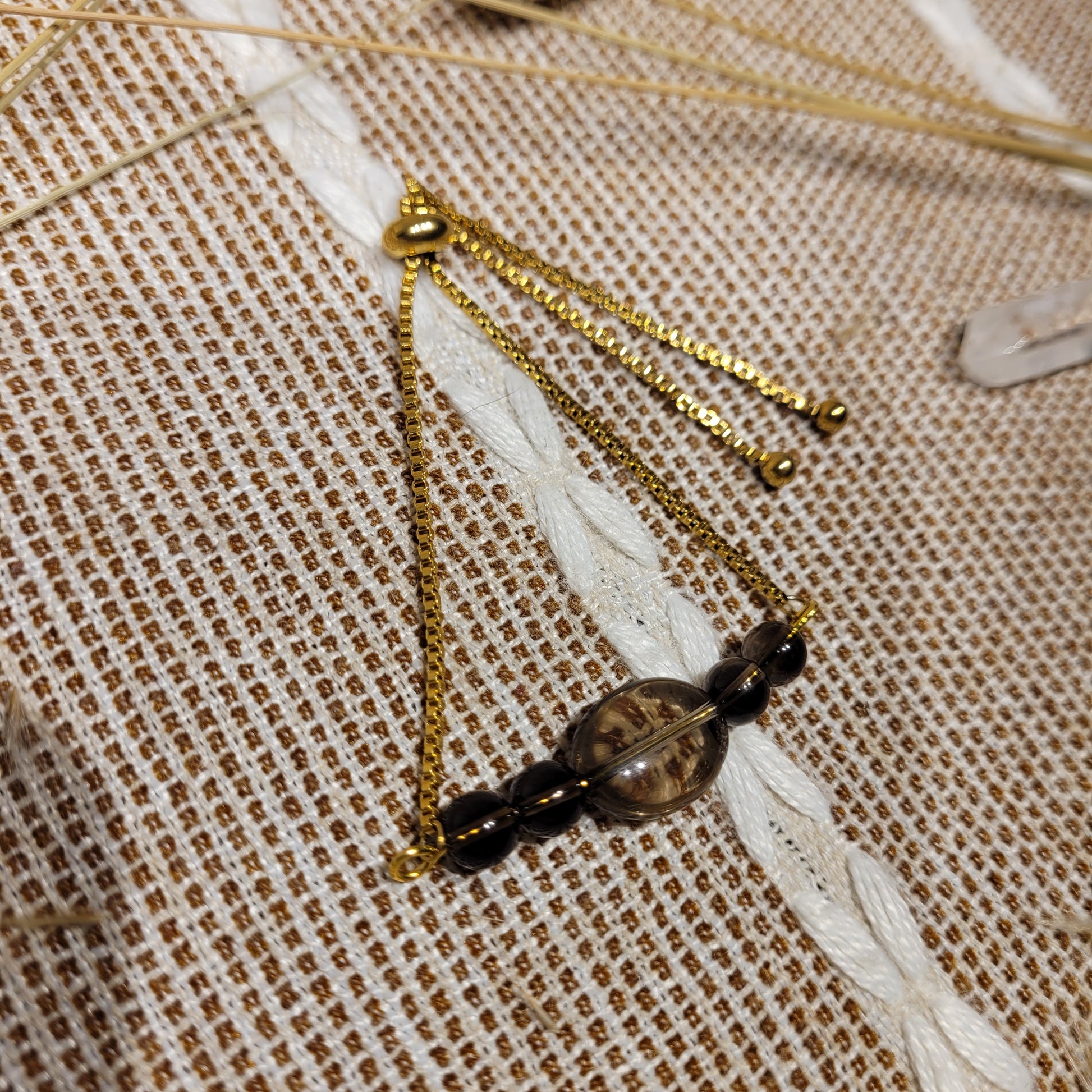 I made this Smoky Quartz Bracelet with high-quality Smoky Quartz crystal beads , brass pin, and gold plated stainless steel chain!
