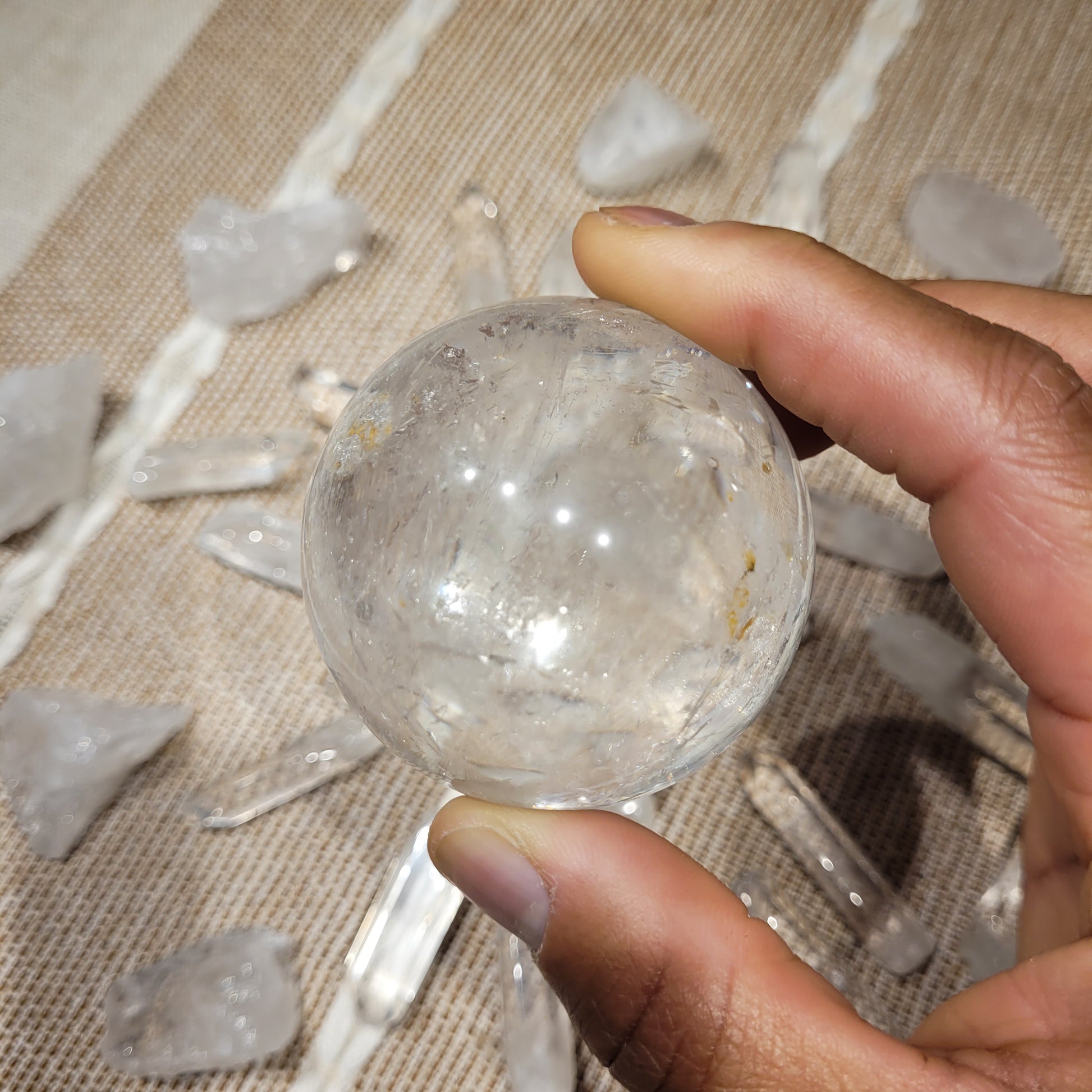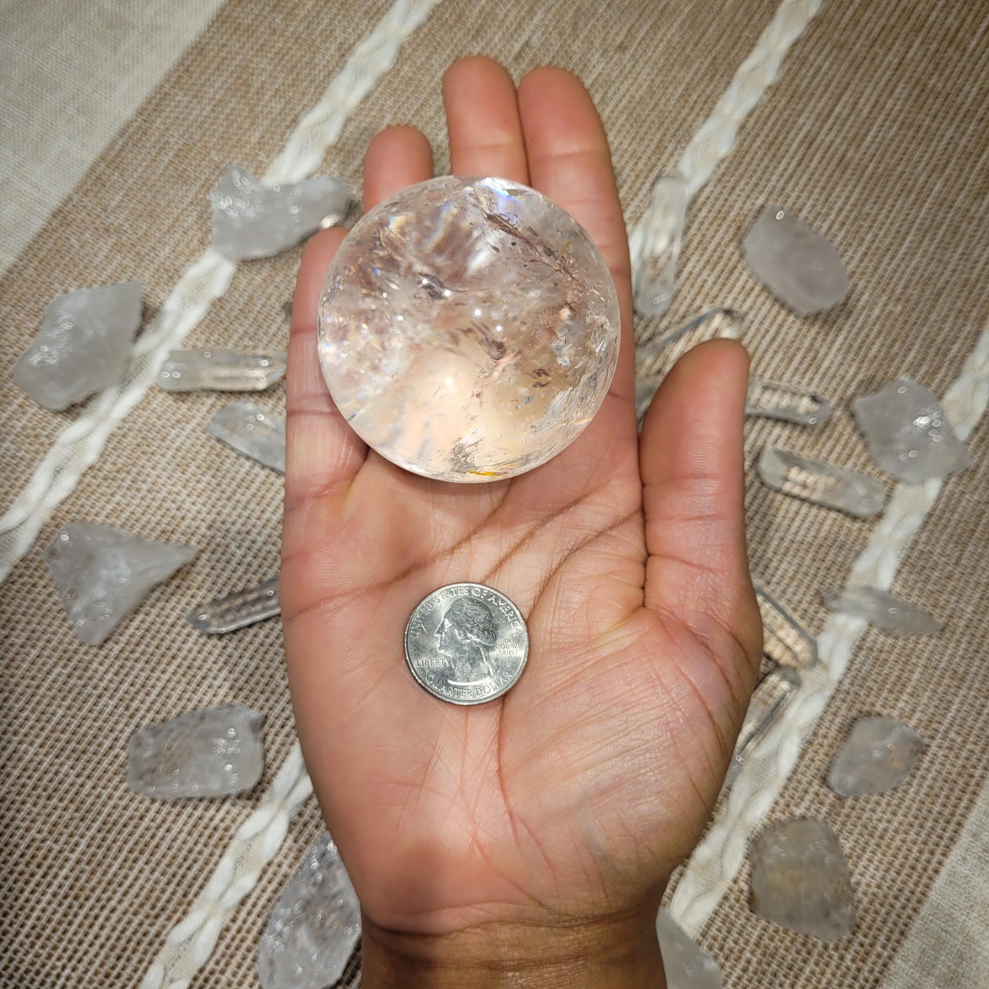 Clear Quartz Sphere with amazing clarity! Weighs approximately 230g.