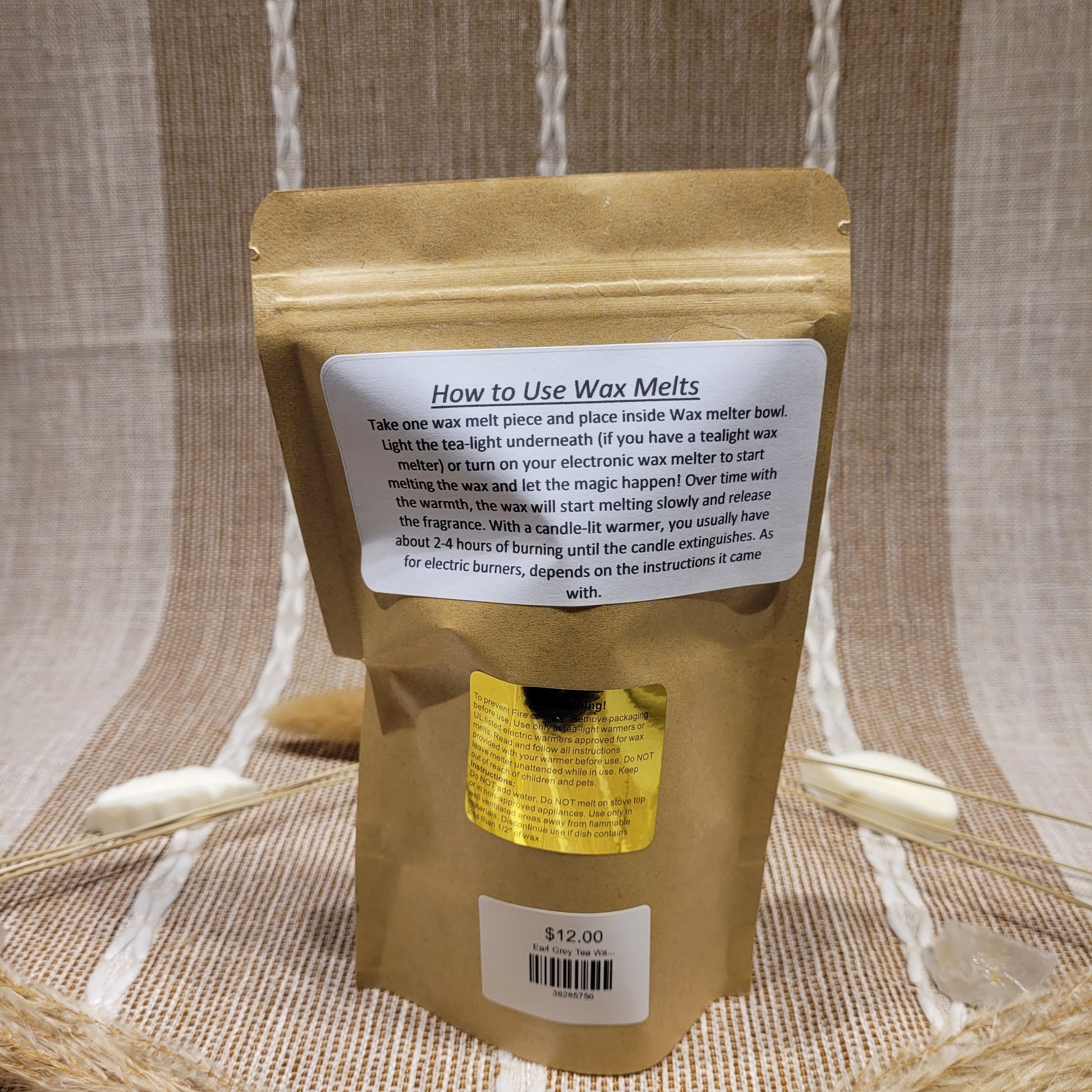 Handmade Earl Grey Tea scented soy wax melts are created with high quality, clean burning fragrance essential oil blend and natural soy wax! Contains about 16 leaf shaped wax melts. Each wax melt gives about is about 10-12 hours of fragrance. You change the wax melt in your burner when you can no longer smell the fragrance. Wax melters are designed to be used for short periods, typically 4-8 hours, to avoid overheating and prevent accidents.