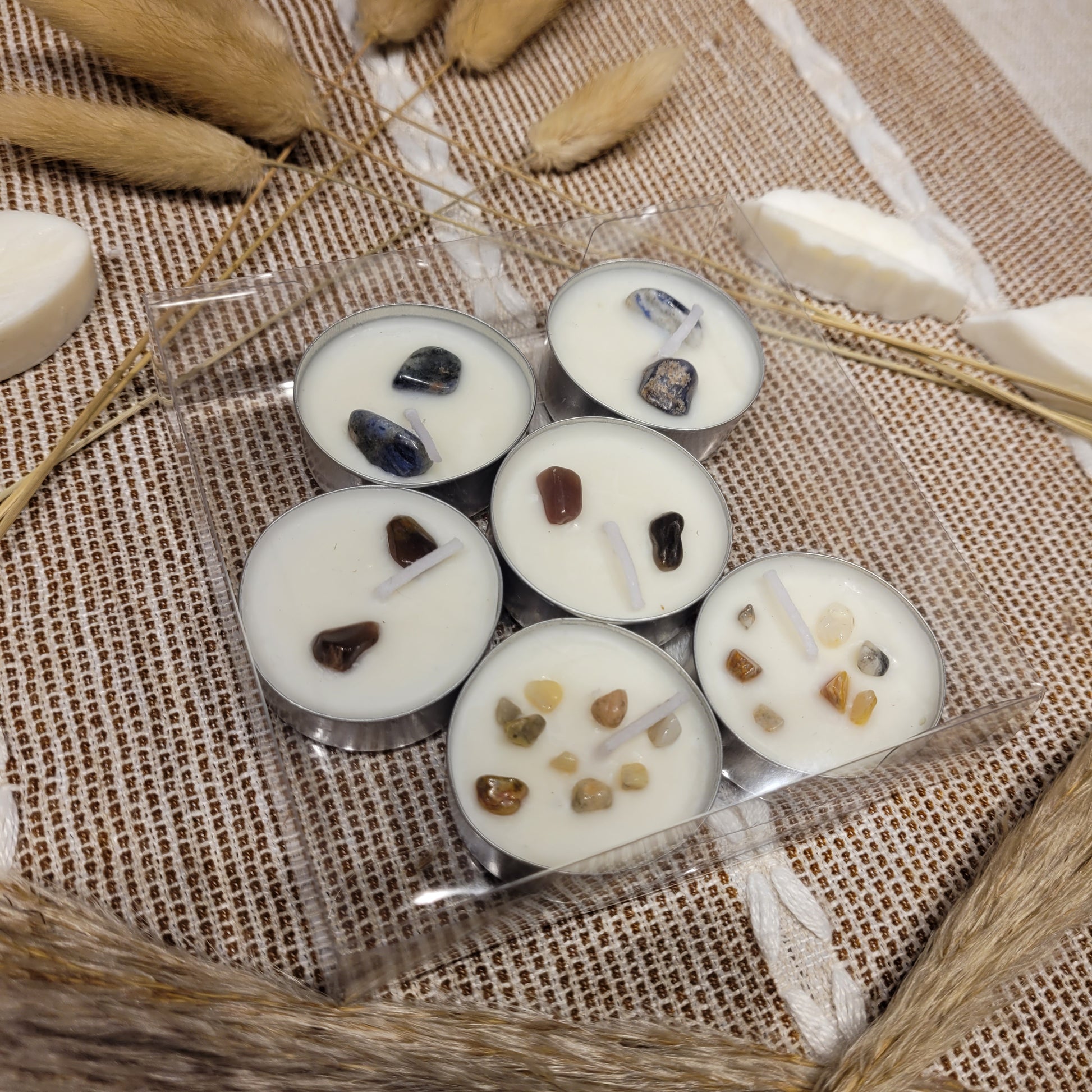 Handmade soy candles created with high quality, clean burning fragrance oil, cotton wick, and decorated with high-quality crystals!